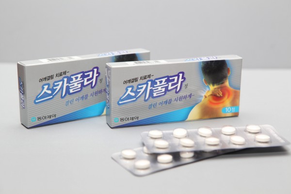 동아제약 마케팅 담당자는 “스카풀라 정은 붙이거나 바를 필요 없이 간편하게 복용 할 수 있는 어깨 결림 전문 치료제다“라며 “근육이완 작용과 소염진통 작용의 복합작용을 통해 여러 제품을 따로 처방 할 필요가 없어 편의성과 경제성을 갖춘 제품이다”라고 말했다.