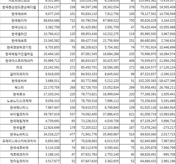 - 다국적 제약사 한국법인 직원 1인당 연급여 8천만원대