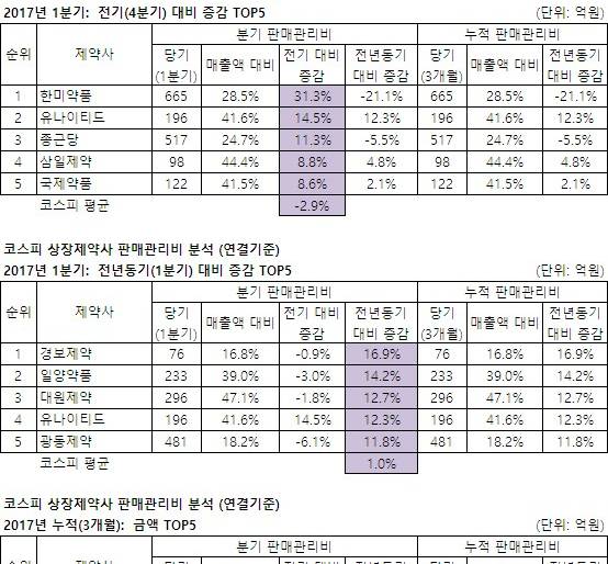 - 올해 1분기 코스피상장제약사의 전년동기대비 평균 판관비 증감률은 '소폭', 코스닥상장제약사는 '큰폭'으로 증가한 것으로 나타났다. ...
