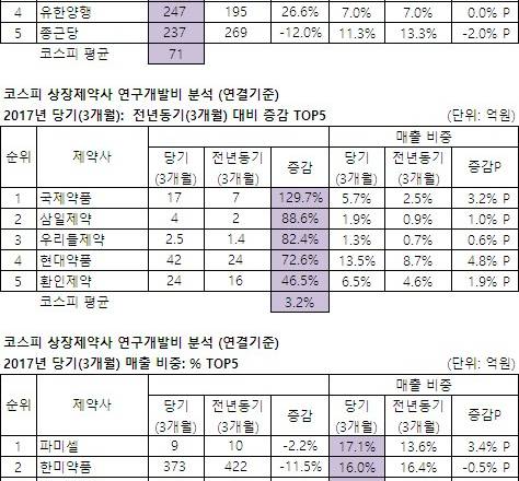 - 상장제약사 1분기 R&D 증감률,국제약품 삼일제약 우리들제약 순