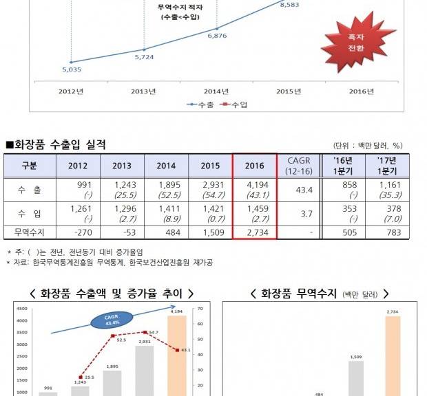 - 2016년 보건산업 수출 1등 공신 ‘화장품’
