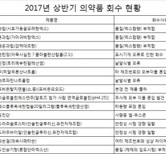 - 올 상반기에 10개 제약사 15개 의약품이 품질부적합, 안정성 시험 경향 이탈 등의 사유로 회수조치를 받은 것으로 나타났다. 식품의약...