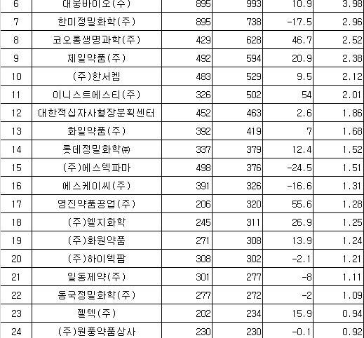 또 원료의약품 생산 1위 업체는 셀트...