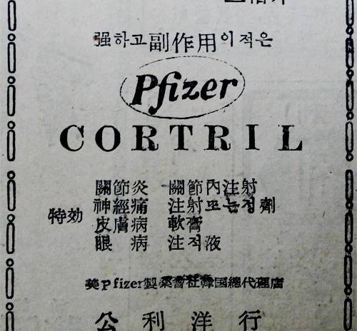 - <85> 화이자 코트릴 화이자 코트릴 광고. 코티숀(CORTISONE)보다 2배나 효능이 강한 제품이 코트릴(CORTRIL)이라고 강조하고 ...