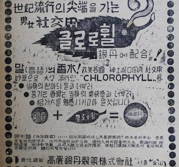- <84> 고려은단 ‘은단’ 고려은단 은단 광고. '세기유행의 첨단을 가는 남녀사교용' '클로로휠' '은단에 배합''말(언어)의 향수'...