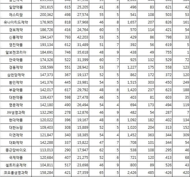 - 상장제약 상반기 상품매출 증가율, 바이넥스 파미셀 에이프로젠 순