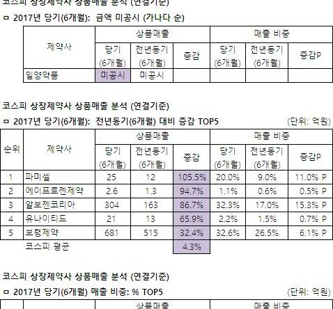 - 올해 상반기 코스닥상장 제약사의 전년동기대비 평균 상품매출 증가율이 코스피상장제약사보다 높은 것으로 나타났다. 매출대비 ...