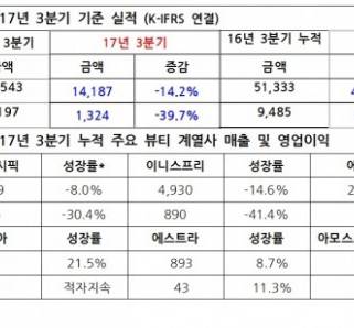 - 올 3분기 아모레퍼시픽그룹과 LG생활건강의 매출은 명암이 엇갈렸다.아모레퍼시픽그룹은 2017년 3분기 누적 매출이 8.7% 감소한 4조 6,8...