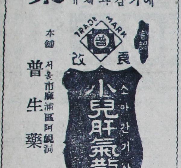 - 보생약방 소아간기산. 어린이용 의약품인 소아간기산은 감기와 유체에 효험이 있는 의약품이라고 강조하고 있다. 당시에는 의약...