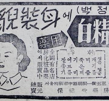- <96> 삼미화장품 백정제 약업신문 1955년 1월20일자 2면하단에 게재된 광고. 당시로는 드물게 약업신문 광고면에 등장한 화장...