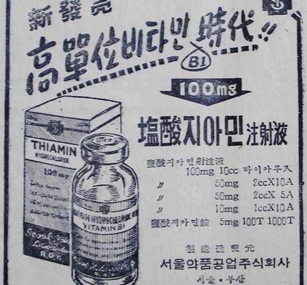 서울약품 고단위 염산 지아민 주사제(액) 광고. 종합비타민 제품이 선보이기 이전에는 이...