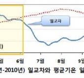 - 연중 일교차가 가장 큰 계절은 봄으로, 특히 4월에 가장 크게 나타난다. 실제로 기상청에 따르면 4월 평균 기온은 11.8~12.6℃로 포근하...
