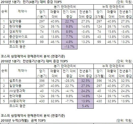 - 올해 1분기 코스닥상장 제약사의 전년동기대비 판매관리비 증감률(평균)이 코스피상장 제약사의 두배를 훌쩍 넘었다. 매출액 대비 판관...