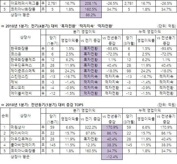 - 올 들어 사드 해빙에 대한 기대감이 높아졌지만 1분기에도 힘겨운 분위기는 계속 이어졌다. 여전히 다수의 국내 화장품기업들이 영업이...