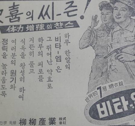 유유산업 비타엠 광고. 비타엠은 유유산업(현재의 유유제약)이 1957년에 발매한 국내최초의 종합...