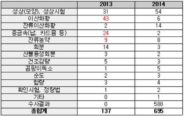 ‘유통한약재 회수폐기 현황’을 위반사항별로 분석한 결과, 2013년에는 이산화황, 중금속, 농약 등 인체에 해로운 성분이 포함된 경우가 총 137건 중 78건에 달했으며, 2014년의 경우, 이산화황, 중금속, 농약, 곰팡이 독소를 포함한 것은 물론이고, 같은 해 11월 국내 최대 한약재 유통회사에서 품질부적합 판정을 받은 한약재를 유통시킨 사실이 검찰에 적발, 유통된 한약재 588건 전체가 회수 조치됨으로써, 전년 대비 회수폐기 건수가 5배나 증가했다.