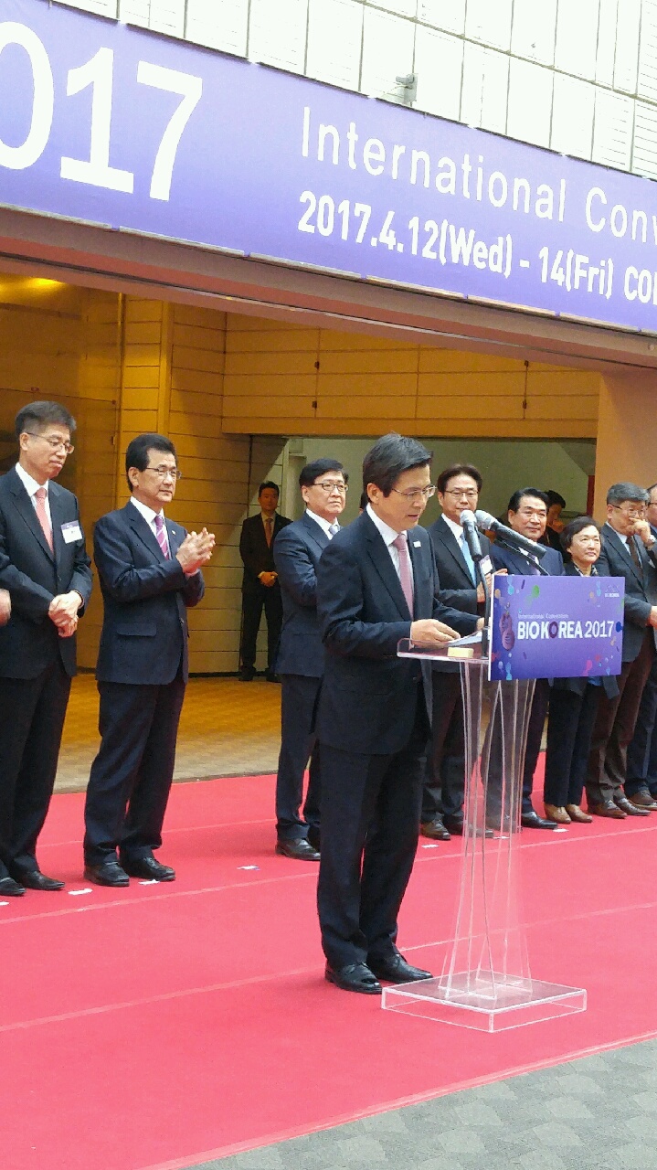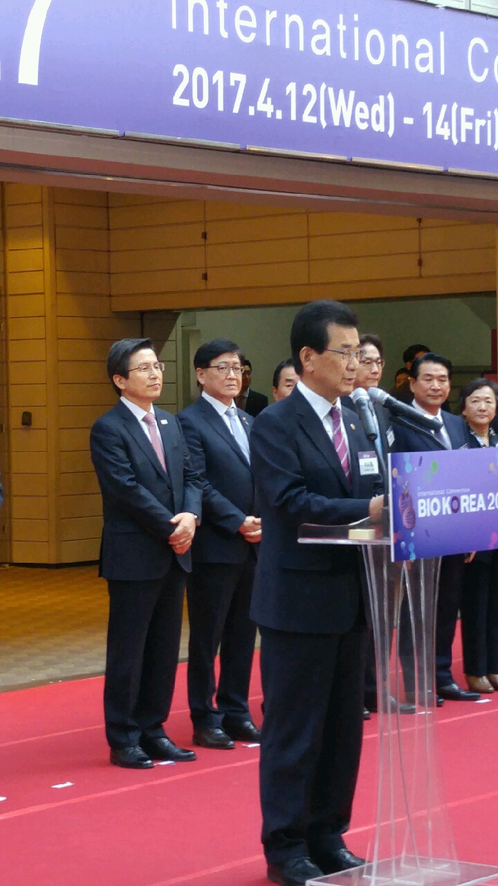 보건복지부(장관 정진엽)가 후원하고 한국보건산업진흥원(원장 이영찬)이 주관하는 바이오 코리아 2017행사와 '하이 코리아 인베스트 페어(Health Industry Korea Invest Fair) 2017' 행사가 4월12일부터 14일까지 서울 코엑스에서 열린다. <사진은 12일 오전에 있은 개막식 광경>