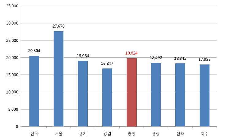 대전지원이 2016년 전국 인구수(통계청)자료를 토대로 전국 지역별 인구 10만명당 만성치주염(K053) 진료인원을 분석한 결과, 충청지역은 10만명당 진료인원이 19,824명으로 서울에 이어 2순위로 높은 것으로 나타났다.