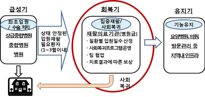 회복기환자를 대상으로 적정한 입원기간을 보장하고 집중재활치료를 제공하며 운영과정, 치료결과, 사회복귀 등 결과를 평가하고, 특히 퇴원 후 지역내 재활 등 복지 자원과의 연계체계도 마련할 계획이다.
