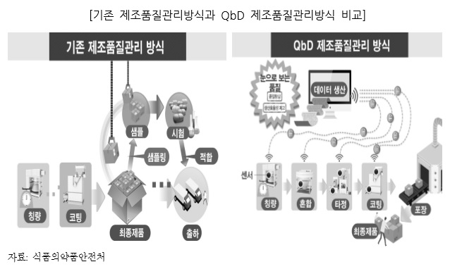 식품의약품안전처는 미국, EU, 일본 등 제약 분야 선진국이 2005년부터 정부 주도로 QbD를 도입해 현재는 정착 단계에 이르렀고, 미국은 2013년부터 제네릭 품목허가 시 QbD 기반 자료제출을 요구하고 있으며, 최근 아세안 지역도 QbD 자료 제출을 의무화하 는 추세(현재 베트남, 인도네시아 등 QbD 자료 제출 요구)로 QbD의 도입 및 조기정착이 필요하다는 입장이다.