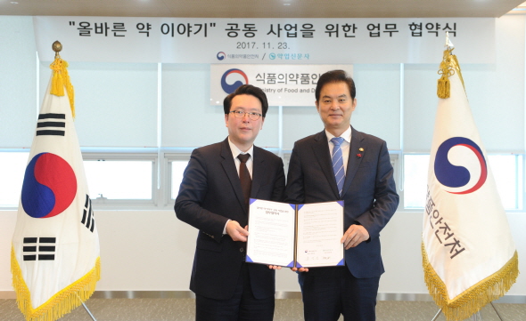 약업신문(대표이사 함성원)과 식품의약품안전처(처장 류영진)는 부정확한 의약품 관련 정보의 홍수속에서 국민들에게 올바른 의약품 관련 정보를 제공하기 위해 '올바른 약 이야기 공동사업' 업무협약을 11월 23일 체결했다.