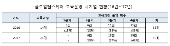 글로벌헬스케어 교육운영이 부적정하다며 통보 조치를 시행하기도 했다.