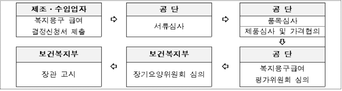 신청을 원하는 제조·수입업자는 노인장기요양보험 홈페이지에서 신청서를 내려 받아 작성한 후 관련서류와 함께 공단 본부에 방문접수하면 된다.