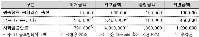 치과 임플란트의 경우 서울과 경기 지역 모두 130만원 이하의 비율이 가장 높게 나타났다.