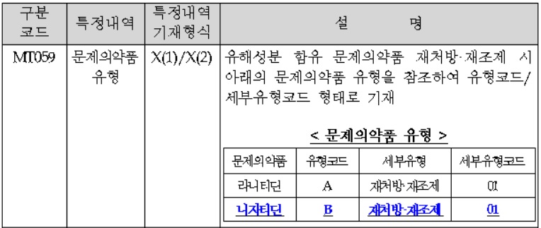 즉, 약국 등 요양기관에서는 MT059(문제의약품)의 특정내역 설명란에 'B/01'을 기재한 후 청구해야 하는 것이다.