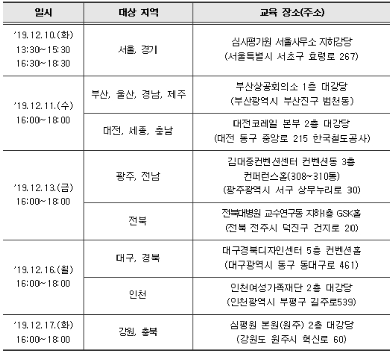 이번 설명회는 12월 10일 서울, 11일 부산‧대전, 13일 광주‧전주, 16일 대구‧인천, 17일 원주에서 각각 열린다.
