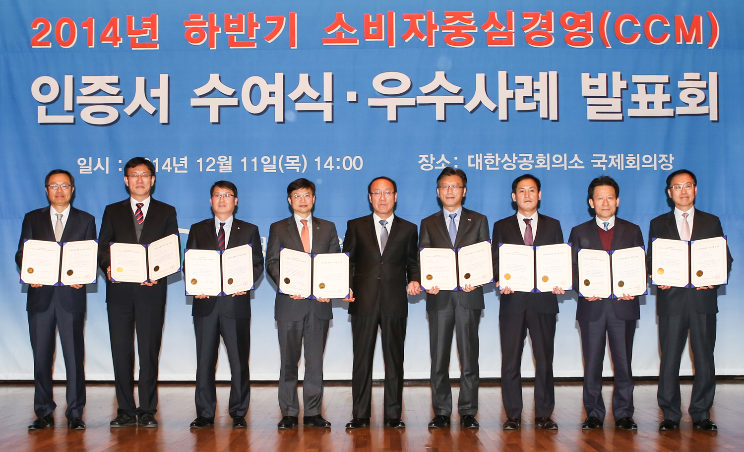 동아제약(대표이사 사장 신동욱)이 지난 11일 오후, 대한상공회의소 국제회의장에서 개최된 ‘2014년 하반기 CCM 인증서 수여식•우수사례 발표회’에서 CCM(Consumer Centered Management, 소비자중심경영) 인증기업으로 선정됐다.