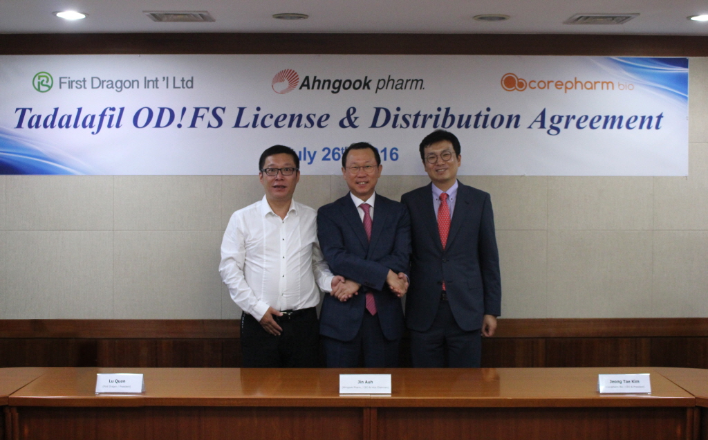 안국약품(대표 어진)은 중국의 First Dragon사(대표 Lu Quan)와 Tadalafil microgranule 제품인 그래서산의 공급계약을 7월 26일 안국약품 본사에서 체결했다. 이번 계약을 통해 안국약품은 중국지역(홍콩, 마카오 포함)에 발매 후 10년간 약 3,000만 달러 규모의 제품을 공급하게 됐다.