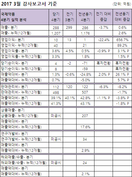 국제약품은 지난해 1,207억의 매출을 달성, 전년동기대비 2.6% 성장했다.