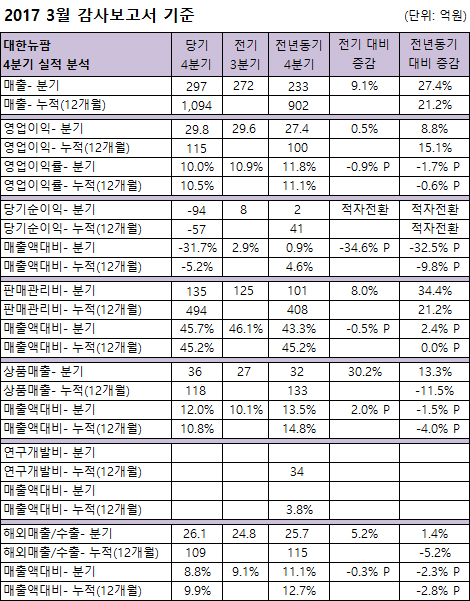4분기 상품매출은 전기대비 8억 증가(+30.2%), 전년대비 4억 증가했고, 누적 상품매출은 전년대비 15억 감소했다.