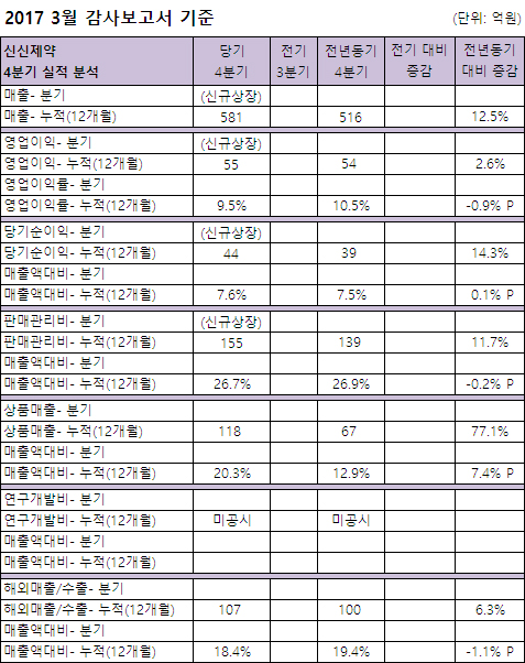 신신제약은 지난해 581억(4분기 신규상장)의 매출을 달성, 전년동기대비 12.5% 성장했다.