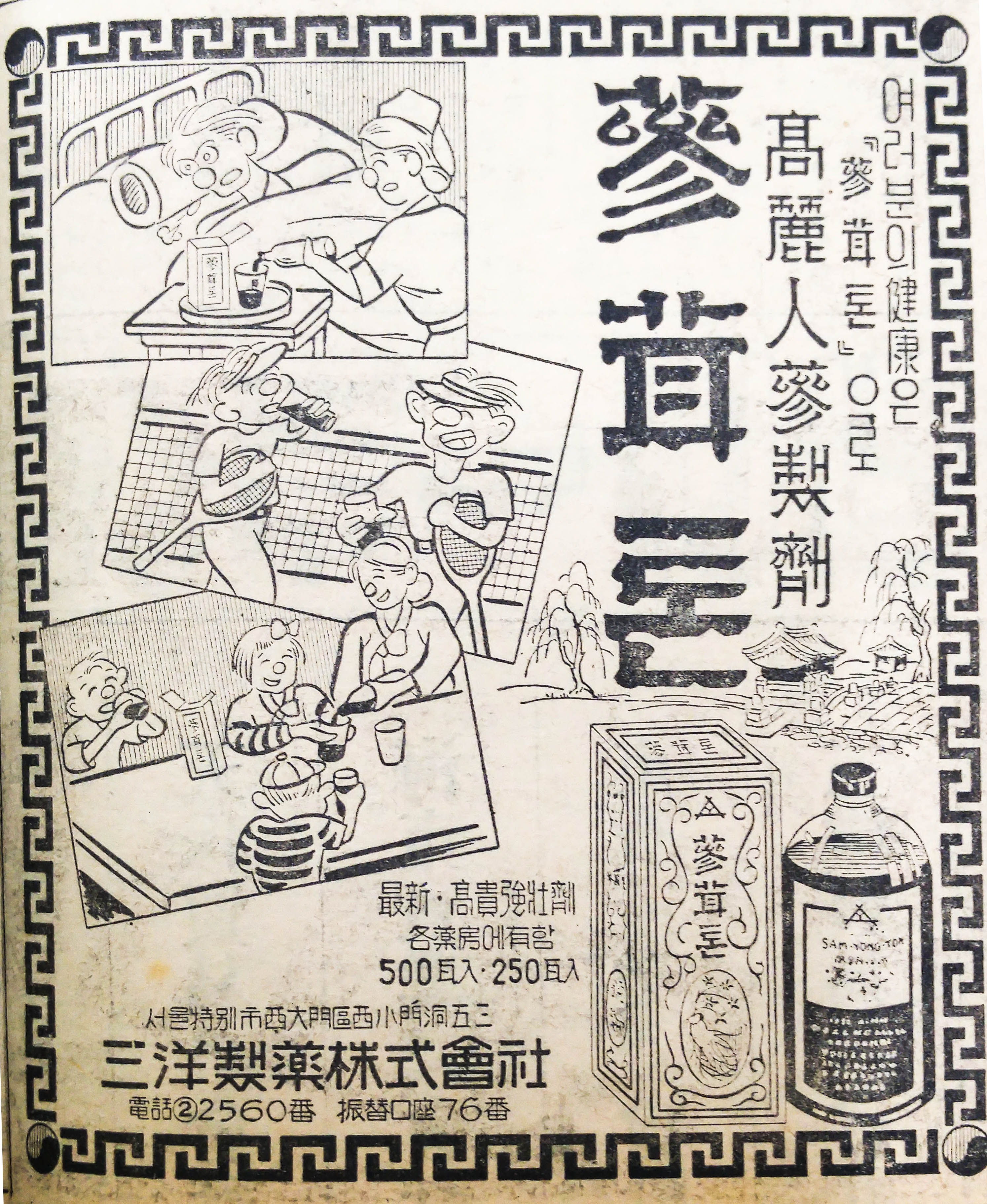 광고문안 역시 ‘여러분의 建康(건강)은...’ 으로 시작되고 있다. 정구를 즐기는 건강한 이들도, 병석에 있는 아픈 이들도, 아이들도, 남녀노소 가리지 않고 모두 건강해 질 수 있다는 의미를 담고 있다.