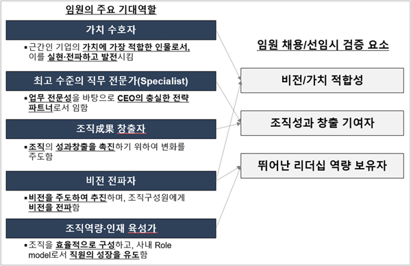 [그림1] 임원의 주요역할 및 채용/육성시 검증 필요 요소