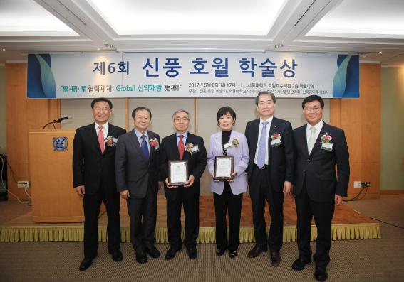 신풍 호월 학술회(이사장 장원준)와 서울대학 약학대학(학장 이봉진 교수)이 공동 주관하고 재단법인 관악회와 신풍제약(주)이 후원하는 ‘제6회 신풍 호월 학술상’ 신약연구개발부문상에 서울대 약대 이상국, 이호영 교수가 공동수상자로 선정돼 5월 8일 서울대학교 호암교수회관 마로니에 홀에서 개최된 시상식에서 수상했다.