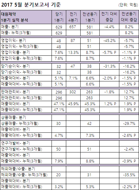 영업이익은 48억으로 5.7%, 당기순이익은 32억으로 16.2% 각각 감소했다.