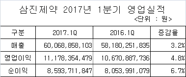 삼진제약 1분기 매출 601억…전년比 3.2%↑, 영업이익률 19% 기록