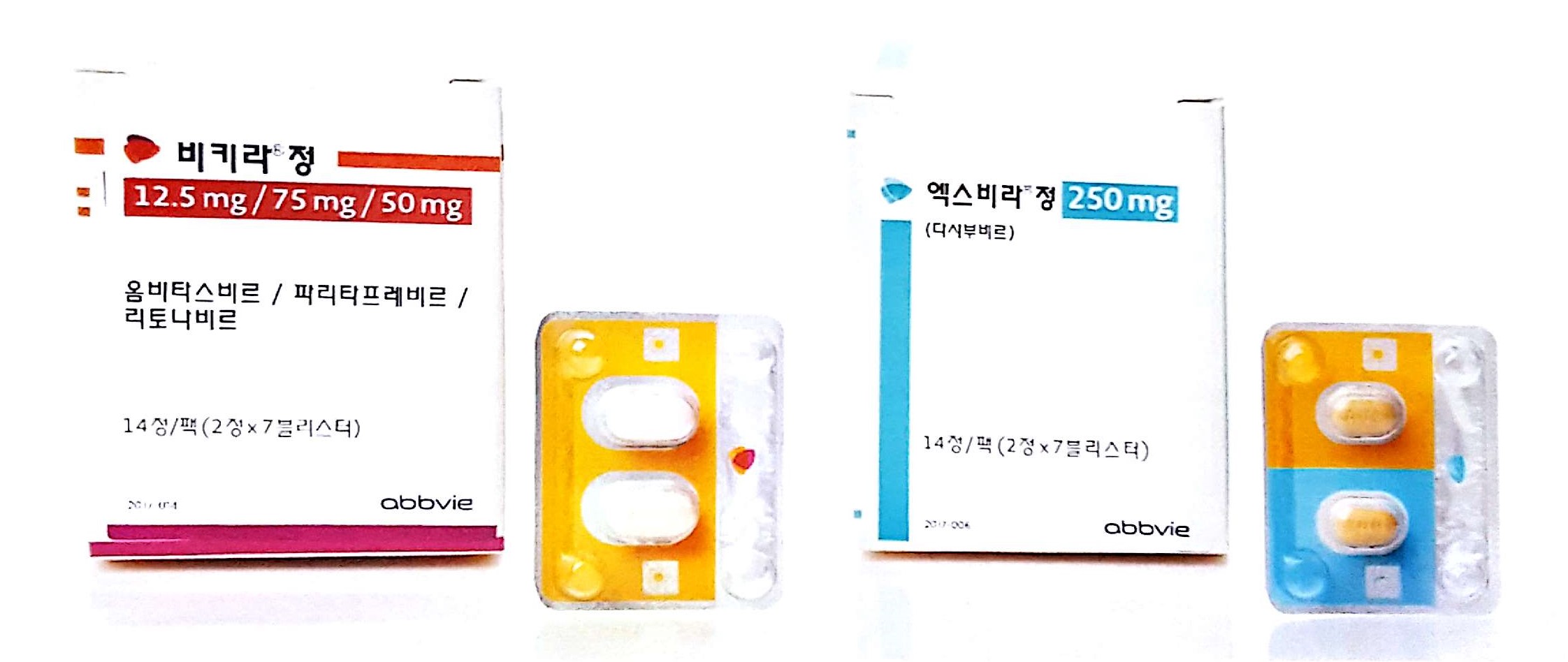 비키라·엑스비라는 아시아에서 유전자형 1b형에 해당되는 745명의 환자를 대상으로 진행된 3상 임상인 ONYX-1과 ONYX-2 연구에 참여한 한국인 환자 모두 치료 종료 12주째 바이러스 완치를 의미하는 바이러스 반응(SVR12) 100%를 달성했다.