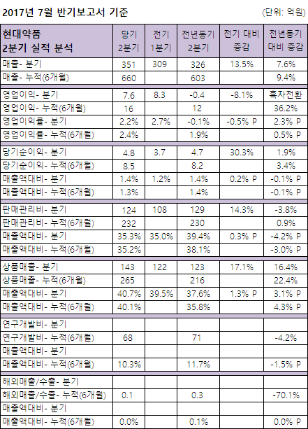 11월 결산 현대약품은 '7월 반기보고서 기준' 660억원의 누적매출(6개월)을 달성, 전년동기대비 9.4% 성장했다.