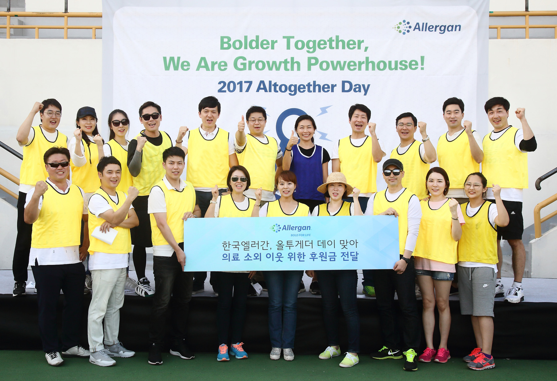 한국엘러간의 ‘올투게더 데이’는 한 해 동안 수고한 엘러간 임직원의 노고에 대한 감사와 회사의 비전을 함께 나누는 뜻깊은 창립기념일 행사이다. 지난해에는 시각장애우의 따뜻한 겨울나기를 위한 난방비를 지원한데 이어 올해는 임직원들 간의 소통과 화합을 확인하는 스포츠 행사와 함께 소외 계층을 위한 기부금 마련 프로그램까지 진행해 그 의미를 더했다.