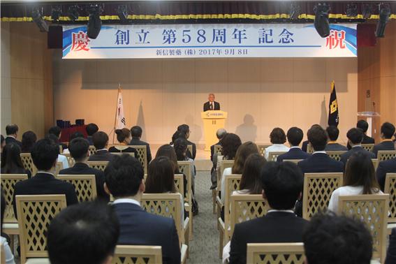 김한기 대표이사는 기념식에서 “ 신신제약의 오늘이 있기까지 노고를 아끼지 않으신 창업주 이영수 회장과 선배 임직원, 지금도 각자의 위치에서 최선을 다하고 있는 현 임직원들에게 감사의 마음을 전한다”며 " 올해는 기업공개를 통해 코스닥 상장을 한 뜻깊은 해로 2019년 cGMP급 세종시 신공장과 서울 마곡지구 R&D센터 건립과 더불어 보다 적극적인 해외진출을 통해 글로벌 헬스케어 전문기업으로 가기 위한 원년으로 삼겠다”고 밝혔다.