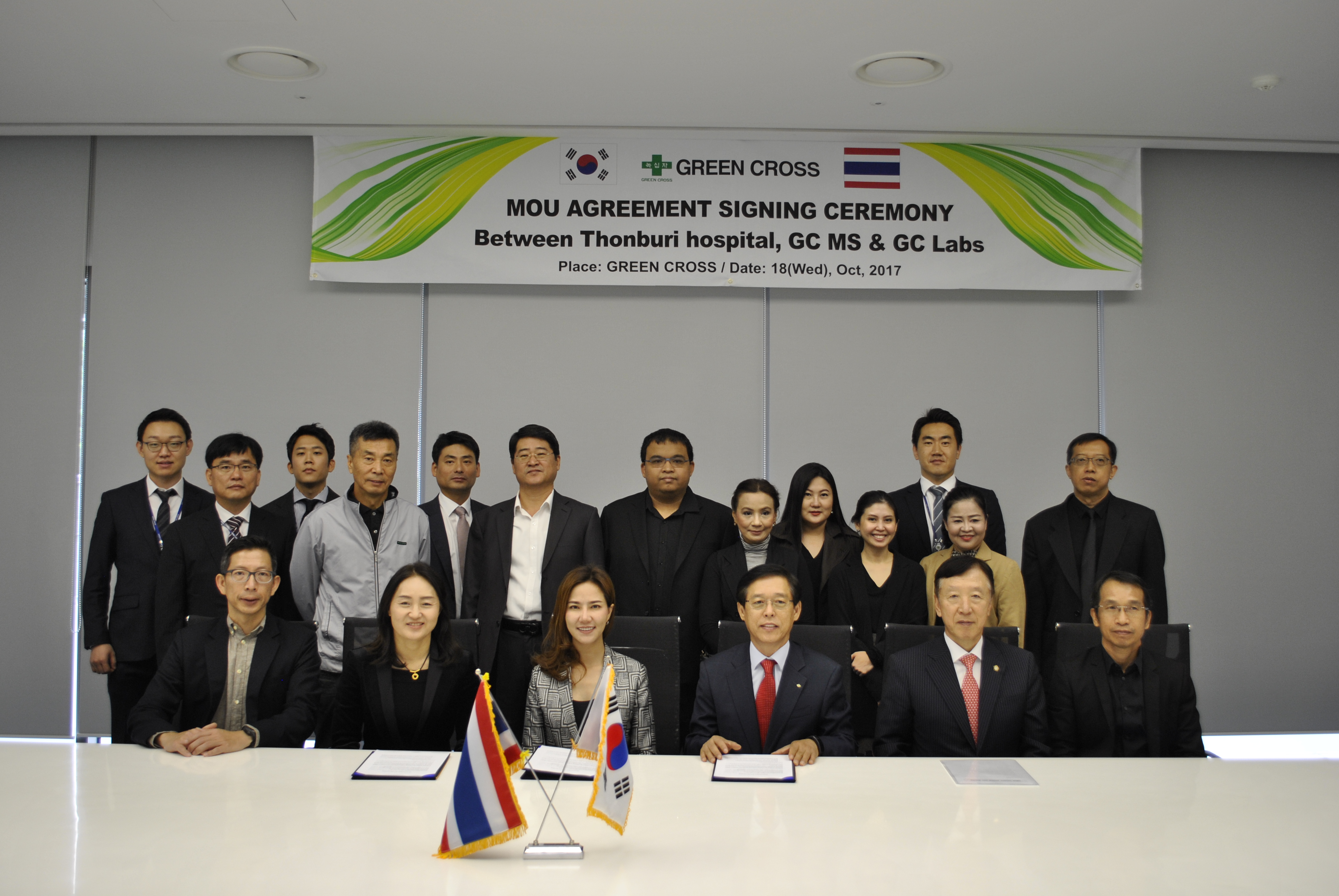 진단시약 및 의료기기 전문업체 녹십자엠에스(대표 김영필)와 임상검사 전문의료기관인 의료법인 녹십자의료재단(원장 이은희)은 경기도 용인에 위치한 녹십자엠에스 본사에서 태국 ‘Thonburi Healthcare Group’과 진단사업 협력을 위한 양해각서(MOU)를 체결했다고 18일 밝혔다.