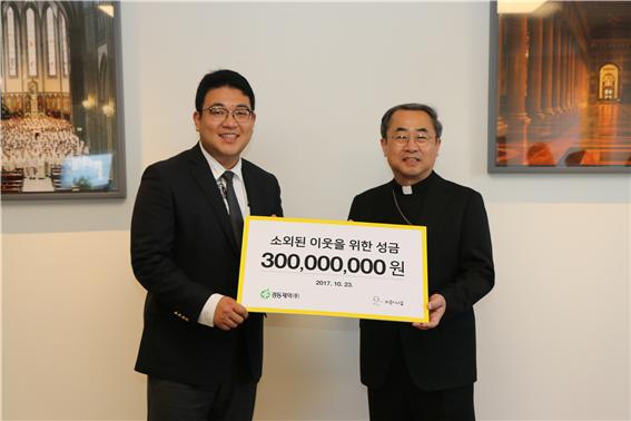 경동제약(회장 류덕희)는 23일 서울대교구청에서 (재)바보의나눔(이사장 손희송 주교)에 3억 원의 성금을 전달했다.