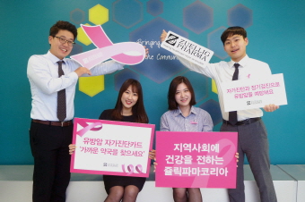 쥴릭파마는 핑크리본캠페인의 일환으로 여성들의 유방암 예방과 조기 발견의 중요성을 알리기 위해 매년 전국 1,000개 이상 약국에 유방암 자가진단 카드와 핑크리본을 무상으로 배포해오고 있다. 협력 약국의 약사들은 유방암 캠페인의 상징인 핑크리본을 착용하고 방문 고객들에게 자가진단 카드와 함께 유방암 조기진단 관련 정보를 제공한다.
