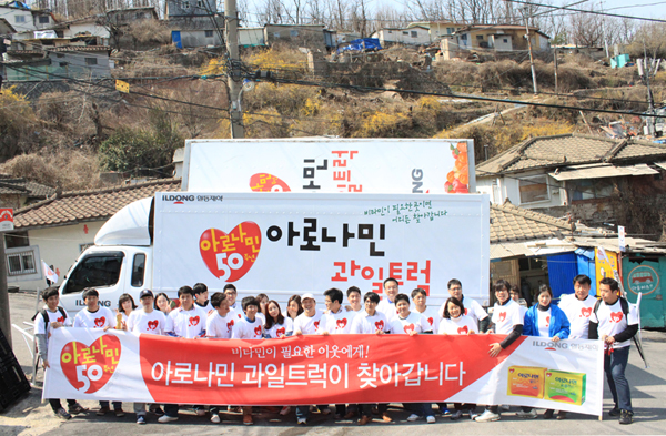 특히 비타민영양제인 아로나민의 판매 수익금 일부를 활용해 아로나민처럼 비타민이 풍부한 과일을 전국 각지의 다양한 사람들과 나누며 의미를 더했다. 행사 당시 잔잔한 감동을 선사하며 사람들로부터 좋은 반응을 얻었고, 현재는 사회복지시설, 기초생활수급자가정 등을 대상으로 꾸준히 진행하고 있다.