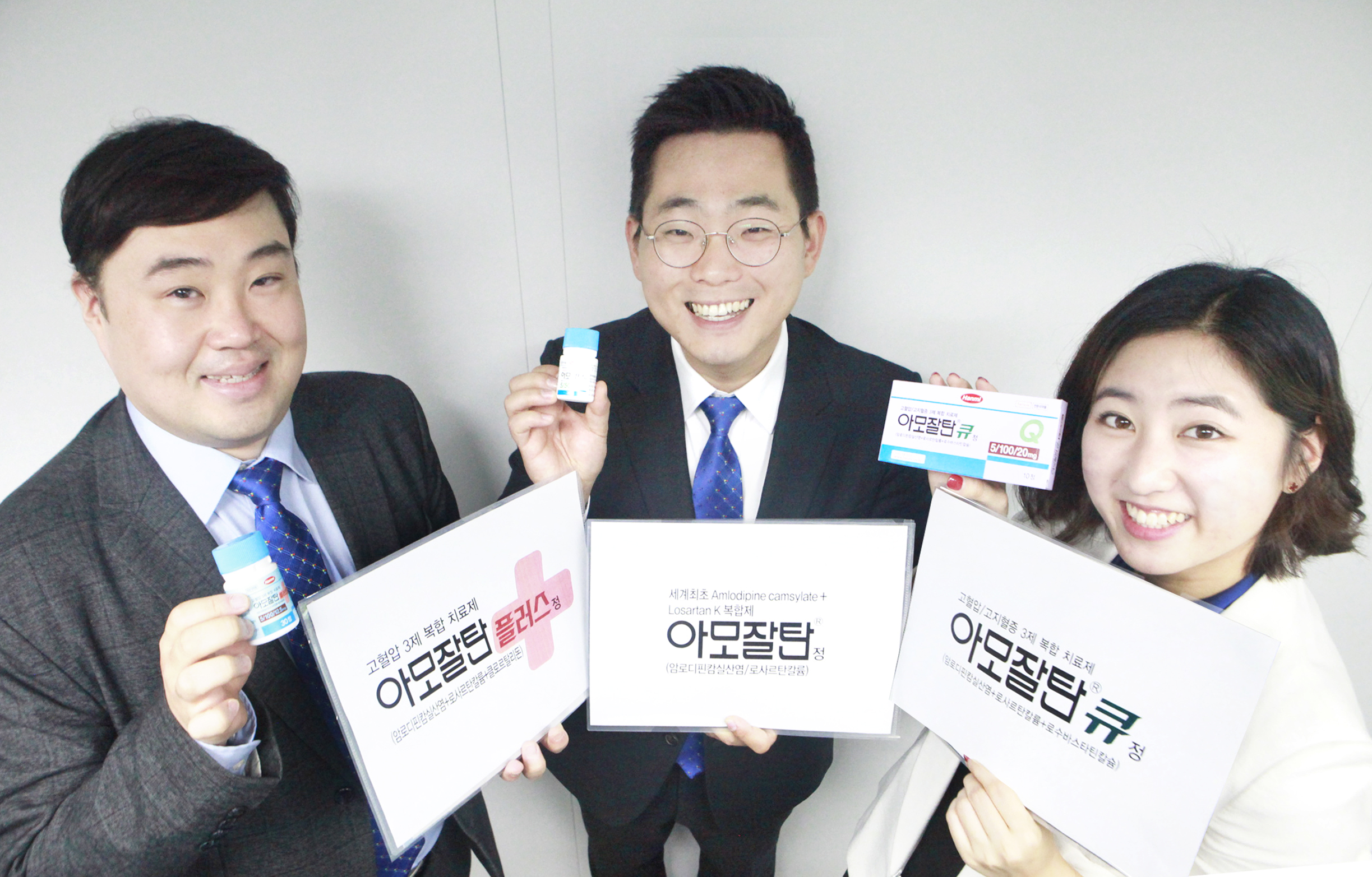 ARB계열 고혈압 치료 성분인 'Losartan K'와 CCB 계열 고혈압치료 성분인 'Amlodipine camsylate'을 결합한 아모잘탄에, 혈압을 더 떨어뜨리는 성분 클로르탈리돈을 더한 ‘아모잘탄플러스’와 아모잘탄에 고지혈증치료 성분 로수바스타틴을 더한 ‘아모잘탄큐’가 그 주인공들이다.