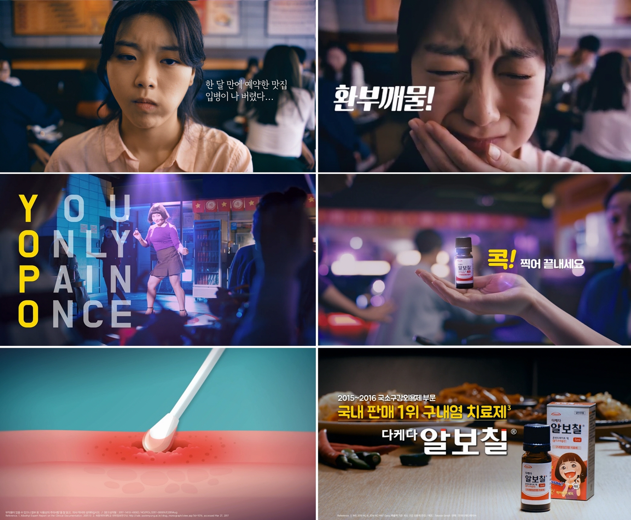 한국다케다제약은 알보칠을 바를 때 느끼는 고통을 잠깐만 견디면 구내염에서 빠르게 해방될 수 있다는 내용을 소비자에게 교육하고자 이번 캠페인을 준비했으며 온라인 캠페인은 1주일만에 2만뷰를 기록했으며 현재 500만뷰를 넘어섰다.